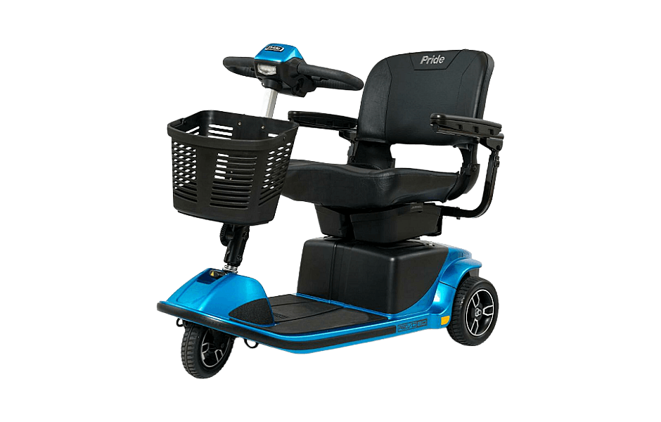 The new Pride mobility Revo 2.0 is a lightweight and easy transport three-wheel mobility scooter. Feel the difference of riding on an HD Three wheel mobility scooter rental that offers, convenience, two-point Comfort-Trac Suspension, rugged pneumatic tires, a 20-inch ergonomic seat, and a smooth moving experience. Take it all at just an economical rental price.